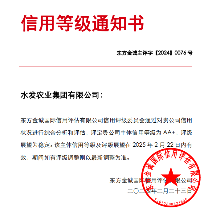 水發(fā)農業(yè)集團榮獲AA+主體信用評級